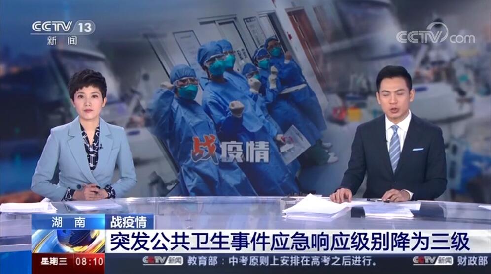 央视网消息:记者昨天(3月31日)从湖南省卫生健康委获悉,根据国家有关规定和《湖南省突发公共卫生事件应急预案》,结合湖南省当前新冠肺炎疫情防控形势,湖南省新冠肺炎疫情防控工作领导小组决定,湖南省新冠肺炎疫情防控突发公共卫生事件应急响应级别由二级降为三级。
