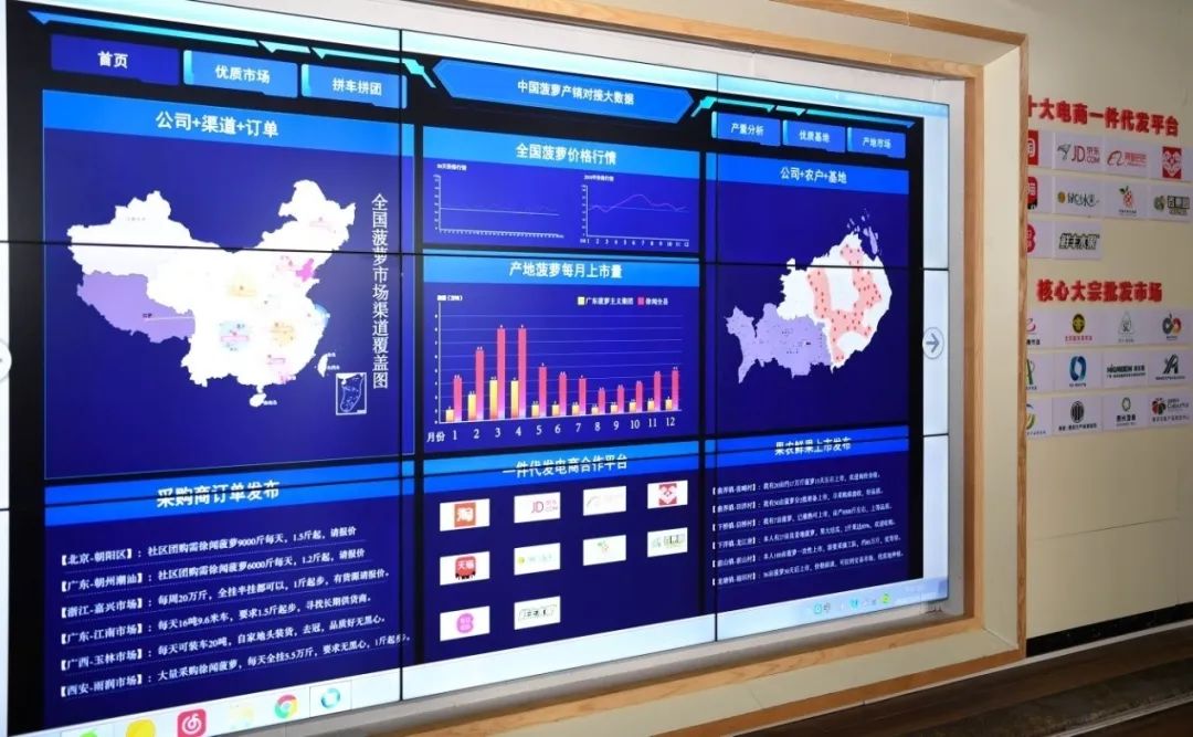 在中国菠萝电商产地直供基地内显示的菠萝产销对接大数据(2020年3月26日摄)。新华社记者邓华摄