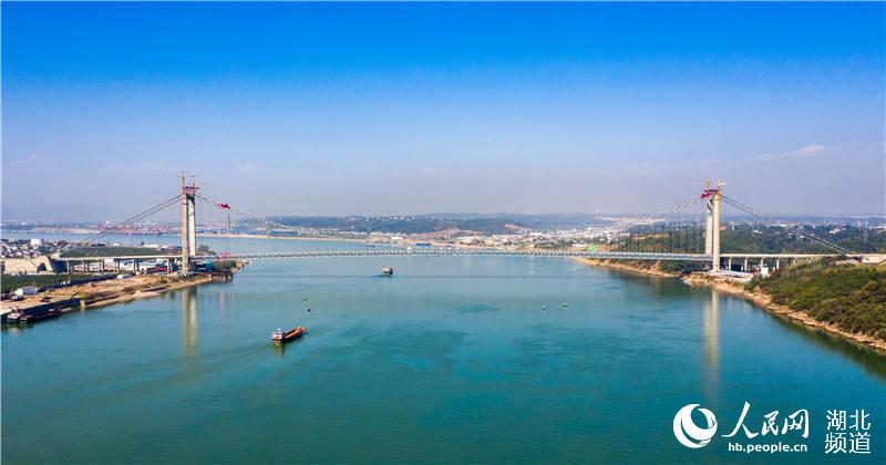 这座由湖北交投集团投资建设的长江大桥目前主体工程已经全部完工,实现全线贯通,正在进行最后的桥面施工中。