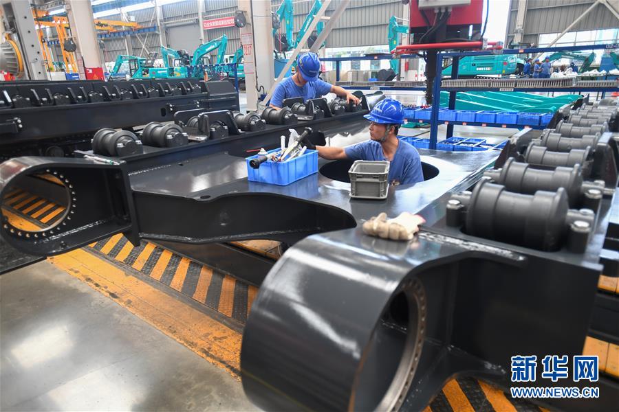 在位于湖南省长沙经开区的山河智能装备股份有限公司,工作人员在中型挖机装配车间作业(9月18日摄)。 新华社记者 陈泽国 摄