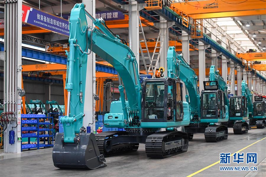 这是位于湖南省长沙经开区的山河智能装备股份有限公司中型挖机装配车间(9月17日摄)。 新华社记者 陈泽国 摄