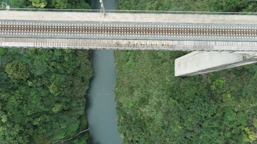 “我是负责桥面安全防护的,每次列车呼啸而过时,都感觉有一股大风迎面而来,要是再瘦点,列车带起的风估计都能把我吹飞。”站在离谷底足足有65层楼高的桥面上,工区里最年轻的女职工黄琳打趣道。
