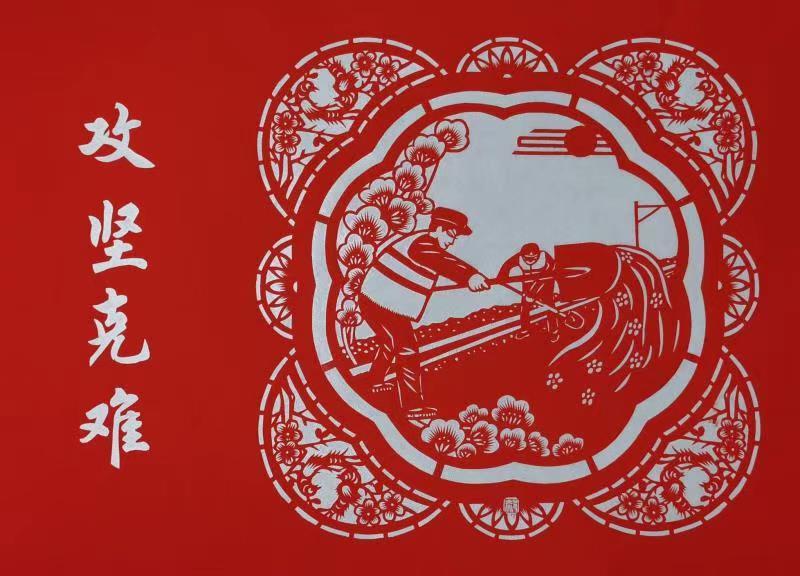伟大事业孕育伟大精神,伟大精神引领伟大事业。现行标准下9899万农村贫困人口全部脱贫,832个贫困县全部摘帽,12.8万个贫困村全部出列……在党的坚强领导下,发挥制度优势,我们完成了消除绝对贫困的艰巨任务,也孕育了“上下同心、尽锐出战、精准务实、开拓创新、攻坚克难、不负人民”的脱贫攻坚精神。弘扬脱贫攻坚精神,我们将创造更多新的伟大奇迹。(剪纸:郝小琴)
