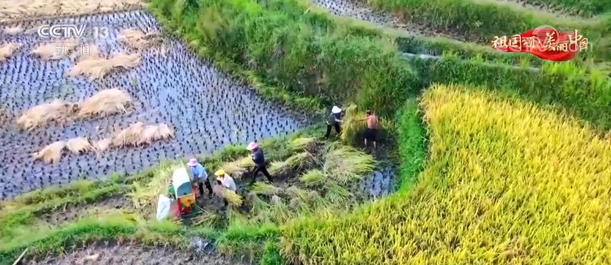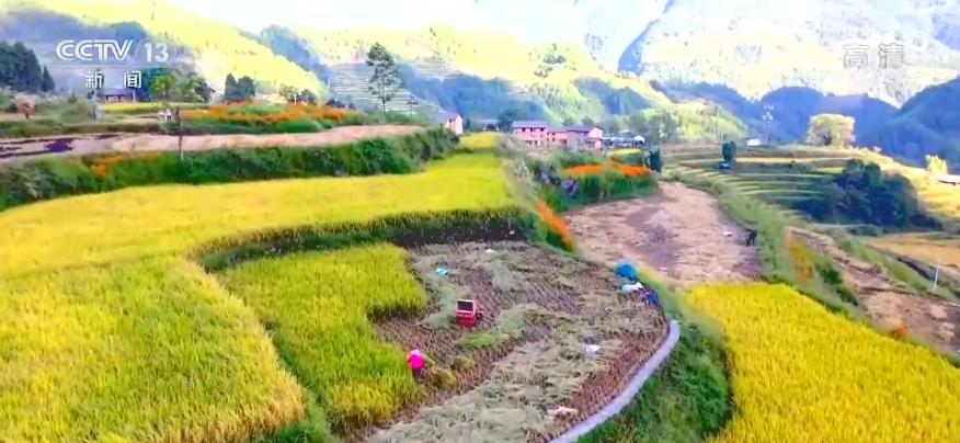 重庆酉阳:漫山铺金美如画 万亩梯田丰收忙