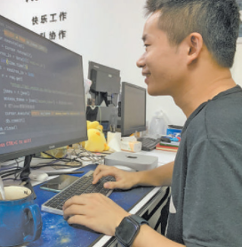 周富贵正在开发程序,一行行代码凝结着无数心血。