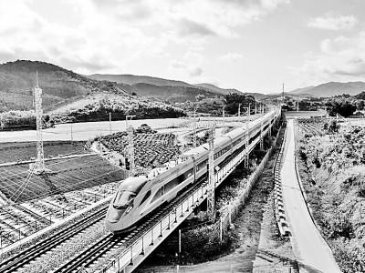 1月3日,列车行驶在位于云南西双版纳傣族自治州景洪市境内的中老铁路上。新华社发(李云生摄)
