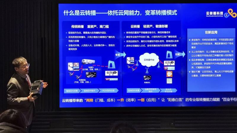 云转播系统前端不仅支持专业广播级摄像机的信号采集,还支持手机等非专业摄像设备,同时也支持其他系统流信号的接入。当现场信号通过5G方式回传到云端后,工作人员可以在云端进行制作,并将最终的转播信号分发给多种平台,同时将通过双云热备提供可靠性保障。“我们通过云端的制作,提供专业的现场赛事摄像、导播和混音技术服务。”相关负责人介绍。