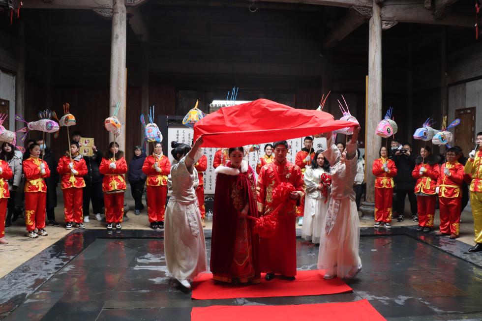 新人们在家人爱的包围和祝福下,与大家一起分享幸福、快乐和喜悦,他们表示,这一场充满徽州特色的婚礼让他们有了满满的仪式感,将终身难忘。
