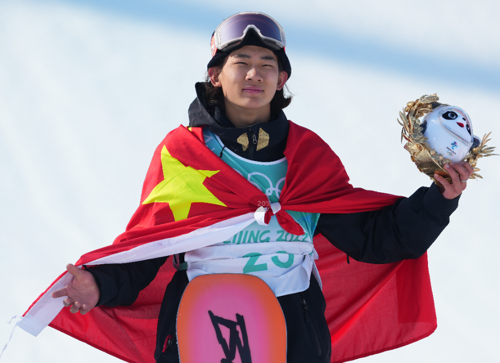 苏翊鸣身披国旗