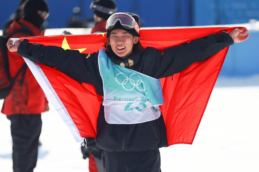 苏翊鸣披国旗庆祝