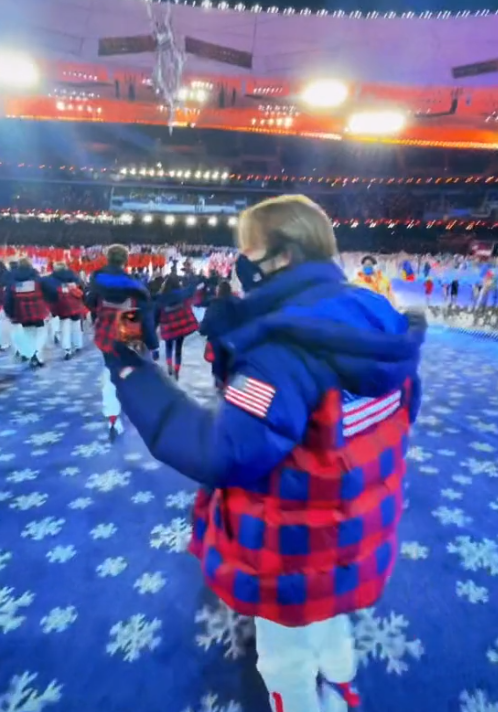 视频记录了凯特琳及其队友20日晚入场参加北京冬奥会闭幕式的场景。视频中的凯特琳欢呼着走进国家体育场“鸟巢”,她的队友还跳跃着与中国志愿者友好互动。凯特琳配文写道:“这是一生的回忆。”