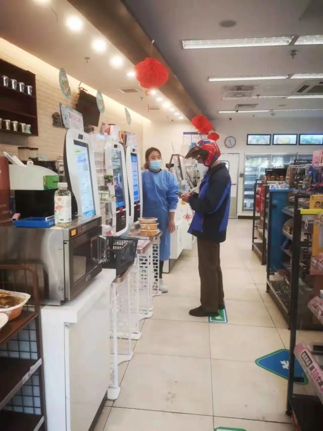 还有个关在龙柏一个酒店的小哥哥,也是饿两天了,他叫了一个闪送,那里还没有微波炉,啥都没有,我全给加热好,他要买够两天吃的,我说不用买太多,反正你加我微信,吃完就打个电话,我会想办法给你送过去。前几天有个人要了10根火腿肠,我们拿错了,他说不要吃这个,让我们换过来,当时很忙很乱,我怎么可能为了这10根火腿肠跑过去换?我说你先放着,等我们有空再调,或者我退钱给你,火腿肠送你吃,看行不行?他还是无理取闹,给我们打了中评。哎,什么样的人都有,有人理解我们的工作,有人不理解。我们接电话的时候,都会给他们讲,现在疫情期间很多东西都不会到货,他们会说姐姐你帮下忙,我说行,你先加我微信,等来货了我通知你。毕竟我们这个店力量有限,人员有限,有些物资确实进不来,也不可能每个人都去满足。