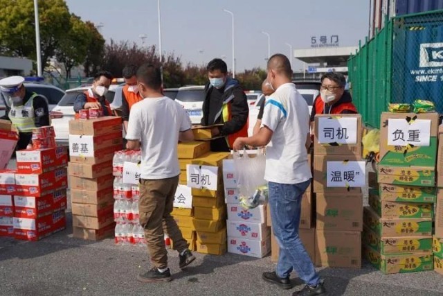 记者了解到,上海交通部门、上海市交通运输行业协会集装箱分会联合上海市慈善基金会,给停留在这一片区域的司机发放了方便面、饼干、火腿肠等食品,大概够2天的消耗量。