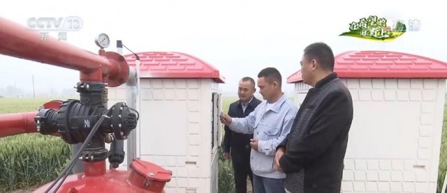 在亳州市谯城区赵桥乡的千亩小麦种植基地里,农户们正在利用智能水肥自动灌溉系统,给地里的小麦浇水灌溉。