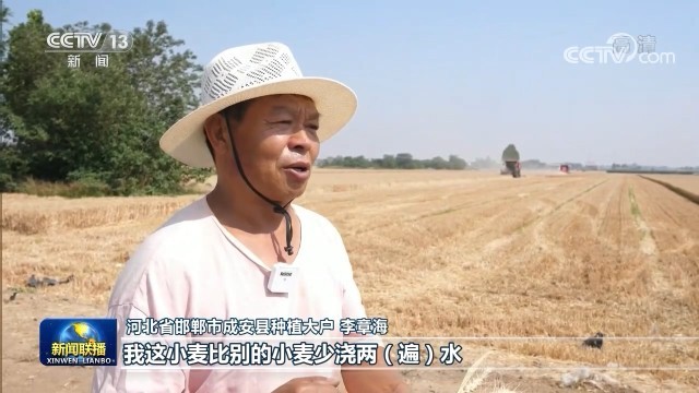 目前,四川、湖北、河南、安徽、江苏麦收已经结束,陕西、山东、山西、河北麦收有序推进。河北小麦收获已经过半。为缓解地下水超采,今年当地3350万亩小麦基本实现节水品种全覆盖,并推广配套技术,发展节水灌溉。成安种粮大户李章海的2000多亩小麦比去年节水20%,可产量并不差。