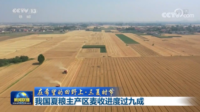 央视网消息(新闻联播):今天(6月17日),我国夏粮主产区小麦收获进度过九成。由于各地大力推进绿色发展,粮食生产提质增效。