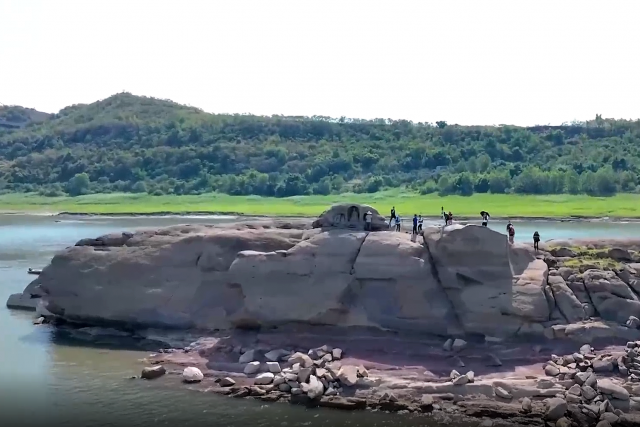 在我国,由于连日来长江水位回落,位于重庆巴南区双河口镇五台村附近常年淹没在江水中的佛爷梁岛礁近日露出江面。岛礁礁石最高处发现3龛摩崖造像,初步确定为明清时期建造,距今已有近600年历史。