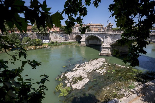 干旱少雨让意大利罗马台伯河水位降低,位于维托里奥·埃马努埃莱二世大桥下方出现了一座在公元50年左右建造的古桥废墟,这是罗马皇帝尼禄时期建造的。