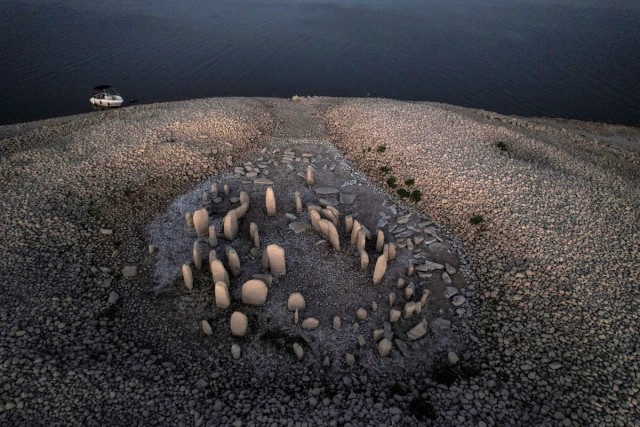 在遭受几十年来最严重干旱的西班牙,位于中部的卡塞雷斯省,随着巴尔德卡尼亚斯水库水位骤降,一座环形巨石阵裸露出来。据报道,这个巨石阵被称为“瓜达尔佩拉尔石墓”,由150块石头组成,年代可追溯到公元前5000年。据悉,考古学家在1926年发现了这一巨石阵,但该巨石阵在1963年的农村发展项目中被洪水淹没。从那以后,它们只出现过四次。