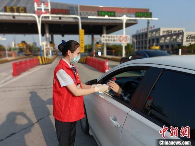 浙江省交通集团杭宁高速长兴收费站收费员郑诗佳正在工作。 徐可璐 供图