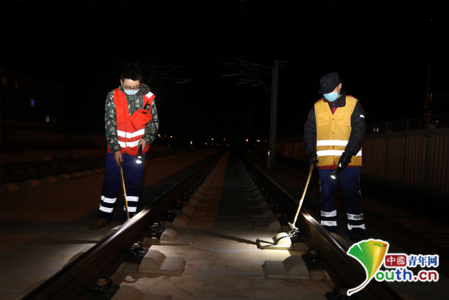 中国青年网哈尔滨10月26日电(记者 夏烯然 通讯员 马立强)“小杨,记录一下,34号枕锚固螺栓浮起1个。”10月20日凌晨1点,哈齐高铁164公里300米处,一行6人走在哈齐高铁大桥上,中国铁路哈尔滨局集团有限公司大庆工务段大庆西高铁车间检控工区工长魏保吉与徒弟杨鸿瑞蹲在线路两侧,一边用检查锤敲打钢轨零部件,一边将发现的问题记录在小本子上。
