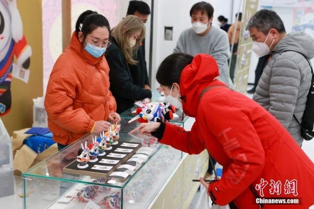 买到“兔墩墩”的市民打卡拍照。(中新社记者 贾天勇 摄)