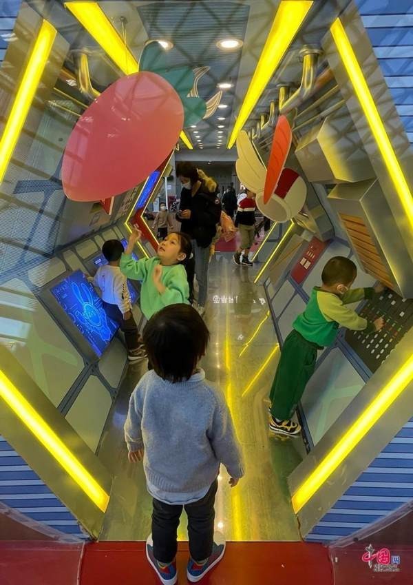 小观众在活动现场体验太空舱。中国网 杨佳 摄影