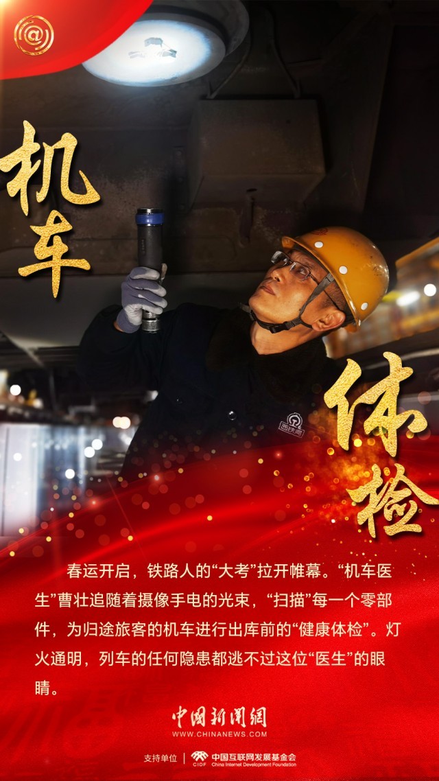 2023年春运启程,为生活、为梦想在外拼搏奋斗的游子开始踏上返乡之路。这一路上,有“机车医生”在铁道为机车“健康体检”,有红马甲志愿者在人群中穿梭忙碌,有专家医生在车厢科普健康知识……他们在为归途游子的春运保驾护航,守护千万家团圆。