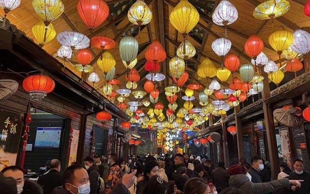 当日,位于该村的木兰不夜城正式开街迎客。街区里人潮涌动,灯火辉煌,各地美食在此汇聚,古装文艺演出精彩纷呈,猜灯谜,赏民俗文化,这个春节,杜堂村烟火气燃烧升腾,文化旅游迸出经济消费新动能。