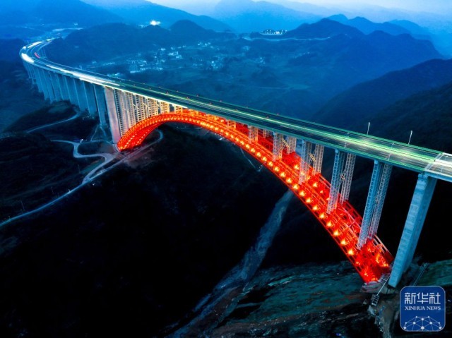 在贵州省遵义市,仁遵高速控制性工程之一大发渠特大桥跨越高山峡谷,为偏远山乡带来新的生机。