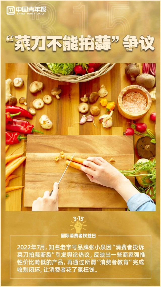 “套路”千万条,谨慎第一条。今天是3·15国际消费者权益日,提起“价格刺客”“科技与狠活”“菜刀不能拍蒜”这些消费维权热点,你熟悉吗?日前,中消协公布了“2022年十大消费维权舆情热点”,一起跟着图片来盘点,避免“踩雷”。