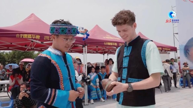 狮舞、抛绣球、赛陀螺、土司巡游……近日,来自英国的自媒体博主亚当在中国壮族聚居地广西百色旅游时,碰上了当地的布洛陀民俗文化艺术节活动,体验到了这里浓郁而古朴的壮族风情。