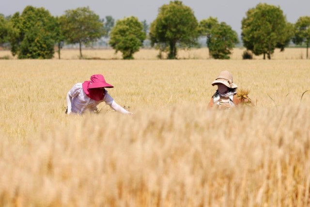 5月23日,农民在江苏省宿迁市泗洪县龙集镇勒东村麦田里除杂。新华社发(许昌亮 摄)