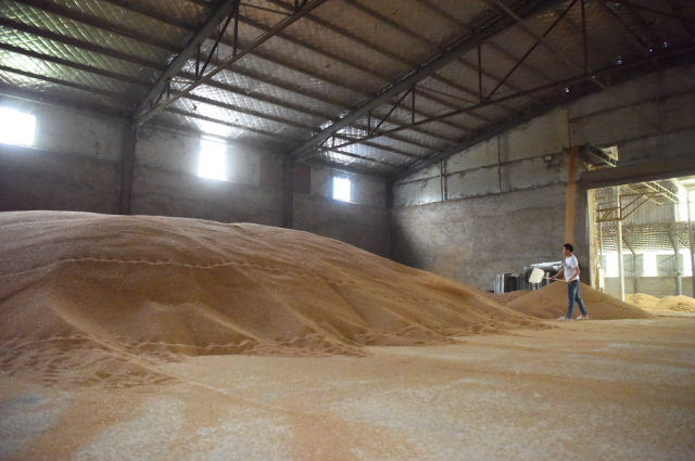 5月30日,在河南省驻马店市正阳县大林镇一家烘干加工合作社,工作人员把烘干后的麦子集中堆放。新华社记者郝源 摄