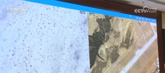 这是国家林草局高分遥感影像监测平台,大屏上展示的是塔克拉玛干沙漠南缘的同一个区域在2010年和2022年的遥感卫星对比图。