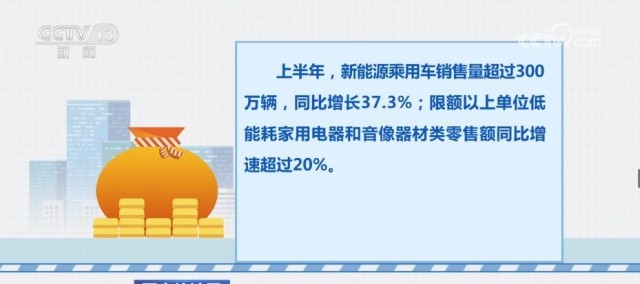 随着居民消费理念转变,促进消费提质升级政策显效,消费新动能持续增强。上半年,新能源乘用车销售量超过300万辆,同比增长37.3%;限额以上单位低能耗家用电器和音像器材类零售额同比增速超过20%。