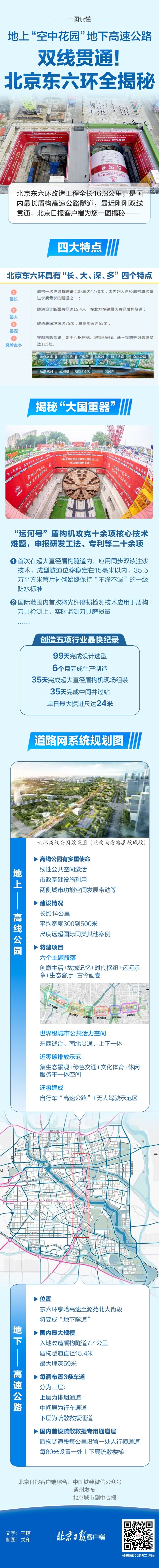 北京东六环改造工程全长16.3公里,是国内最长盾构高速公路隧道,最近刚刚双线贯通,北京日报客户端为您一图揭秘——