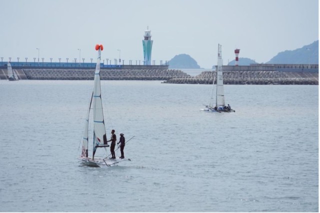 位于象山县松兰山旅游度假区内的宁波象山亚帆中心,两座防浪堤环抱着的一片风平浪静的内湾里,一艘艘帆船陆续驶出,绕过灯塔后驶向大海。作为杭州亚运会唯一涉及海域建设的比赛场馆,这里将在9月20日迎来第一场比赛。