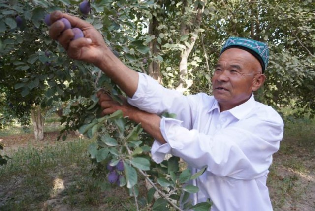 伽师县英买里镇古再村村民库尔班·吾普尔前不久被评为“伽师新梅王”。正在地里干活的他说起来,高兴地合不拢嘴。“我是最早种新梅的人。刚开始有顾虑,种了4亩。后来,县上、镇里支持,派技术员指导。现在,发展到22亩,今年收入30万元不成问题。新梅是我们农民的致富果啊!”(人民日报记者 韩立群 张义钊)