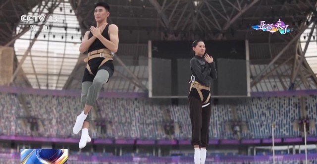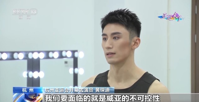 杭州亚运会开幕式演员 黄琛迪:我们要面临的就是威亚的不可控性,因为我们平时都是在地面上排练,所以第一次双人的3D形式在空中完成这样的表现的话,对我们也是一个特别大的挑战。