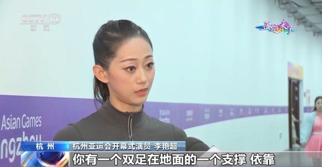 杭州亚运会开幕式演员 李艳超:不管是你走路爬山运动累了以后,你有一个双足在地面的一个支撑、依靠。但我们在空中的时候,其实除了那两根很细的威亚绳可以借到一点点力量以外,全程你的身体都需要收得非常紧,如果你核心不去收紧的话,有可能人在上面是一个散架的状态,特别像一个玩偶。