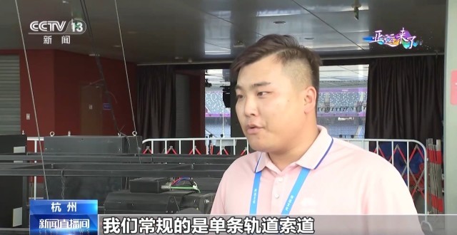 杭州亚运会开幕式威亚工程师 马金明:我们常规的是单条轨道索道,它只能在一个独立的空间内直立升降。双3D它采用的是我们在360度,比如说长宽高一个等额的空间内,我们可以随意去运行,升高、下降、水平移动……各个角落,去完成一些表演、一些运行。