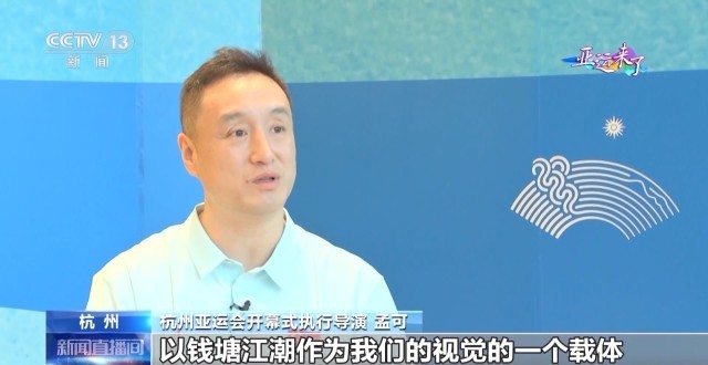 杭州亚运会开幕式执行导演 孟可:以钱塘江潮作为我们的视觉的一个载体,不管是交叉潮也好,一线潮也好,回头潮也好,鱼鳞潮……各种潮的方式,我觉得可能也代表了我们奋斗者每个人不同的位置和每个人不同的方式,在这个时代的浪潮中去搏风击浪。