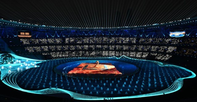 这是9月23日拍摄的开幕式现场显示的亚运数字火炬手人数。新华社记者 黄宗治 摄