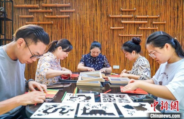 将竹条整齐排列后,再进行细密穿梭,盖上纸模板……在非遗传承人的演示下,台胞们体验了非遗手工竹编,将美好的中秋、国庆祝福于指尖展现。