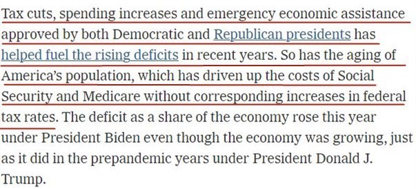 △《纽约时报》:近年来,民主和共和两党的总统都批准了减税、增加支出和紧急经济援助等措施,这些措施助长了不断上升的财政赤字;同时,美国人口老龄化不断推高社会保障和医疗保险的成本,而联邦税率却没有相应提高。
