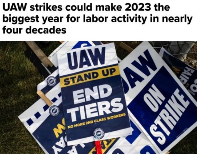 受高通胀和高利率所迫,罢工潮已经席卷全美。2023年被美媒评价为近40年来美国劳工活动最活跃的一年。多个行业大规模的罢工让美国经济蒙受重大损失。