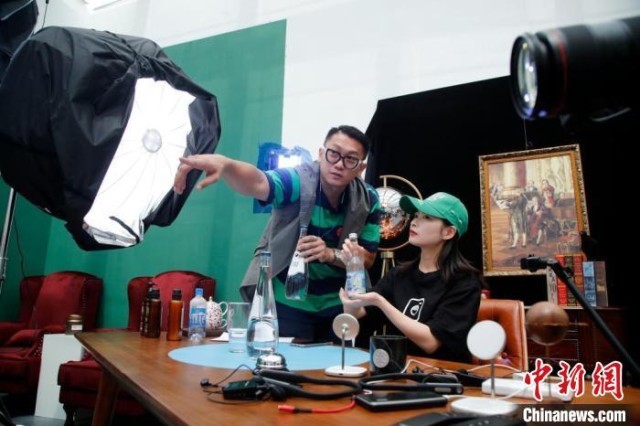 9月6日,邱庆龄(右)带领台湾青年陈立晴体验直播带货。 中新社记者 汤彦俊 摄