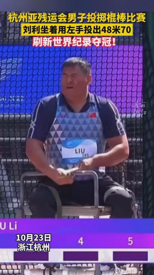 在10月23日结束的杭州第4届亚残运会F32级男子投掷棍棒比赛中,河北运动员刘利以48米70的成绩获得冠军,并刷新世界纪录。