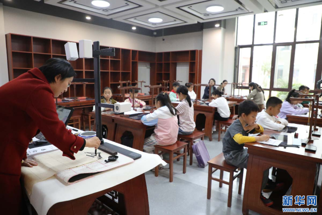 雄安史家胡同小学的书法课。新华网 王立鹏摄